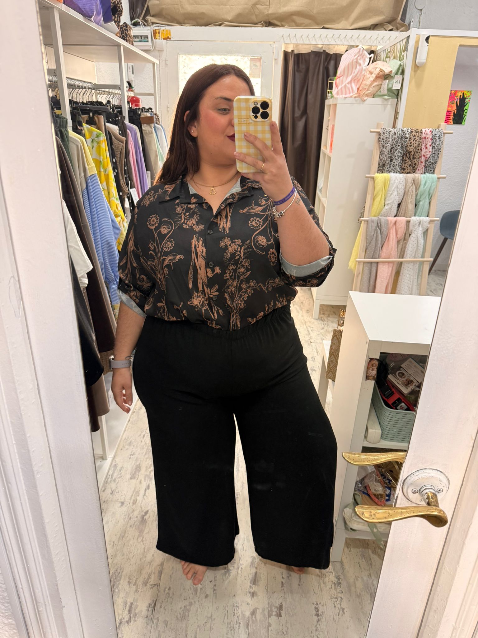 Camisa con botones y estampada en tejido vaporoso, lleva dos aperturas en los laterales por lo que no tienes problemas de talla y lleva botones en las mangas para recoger la misma.