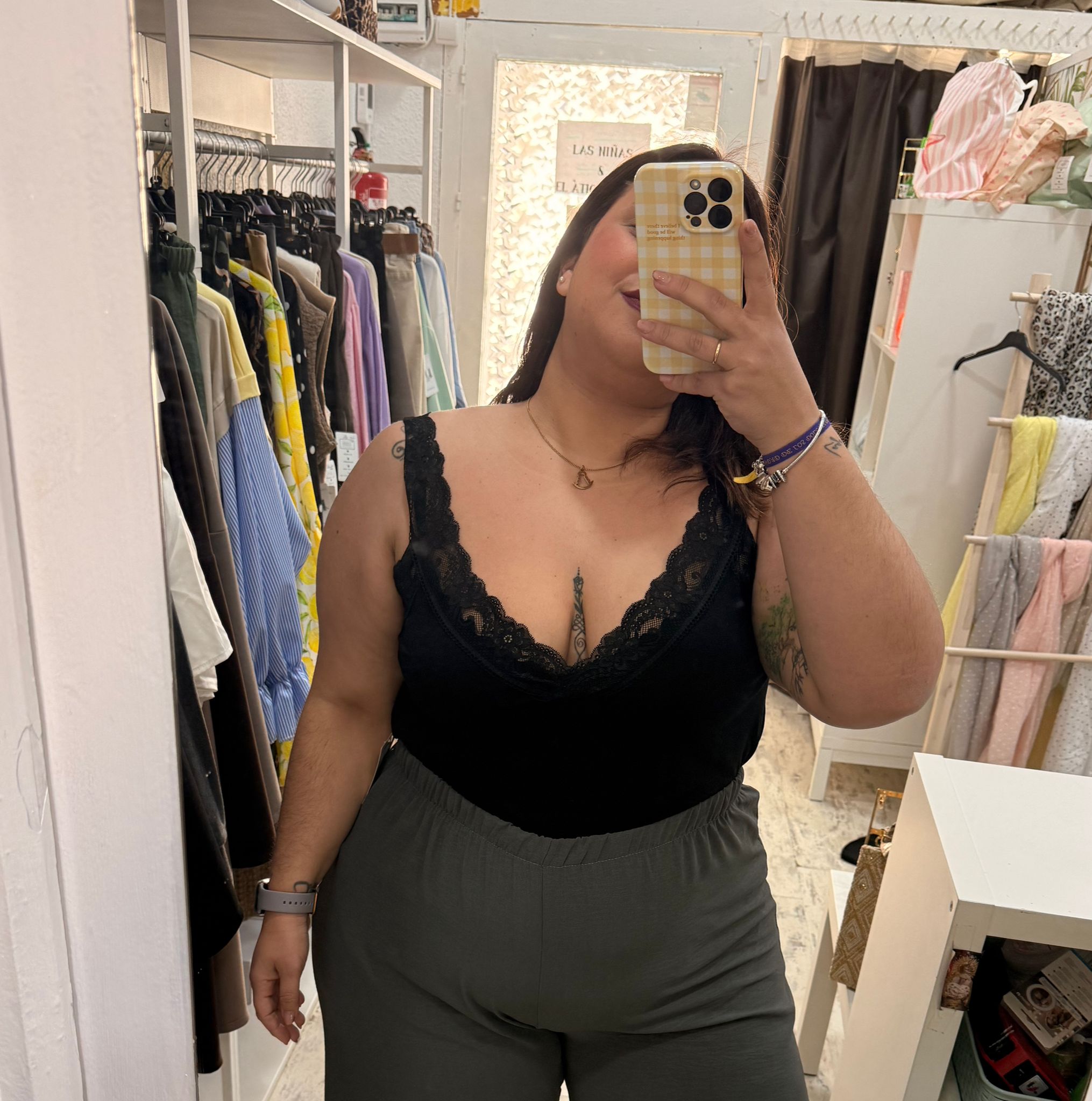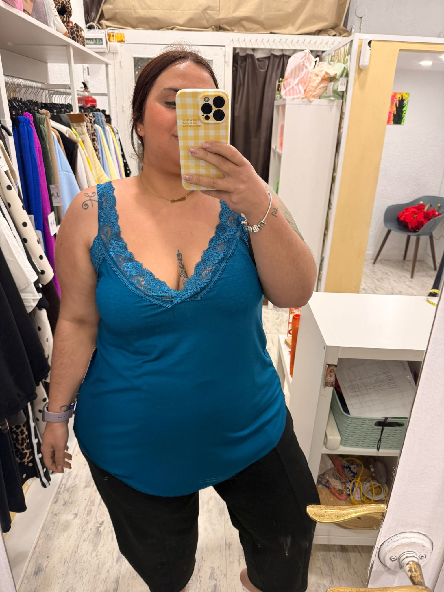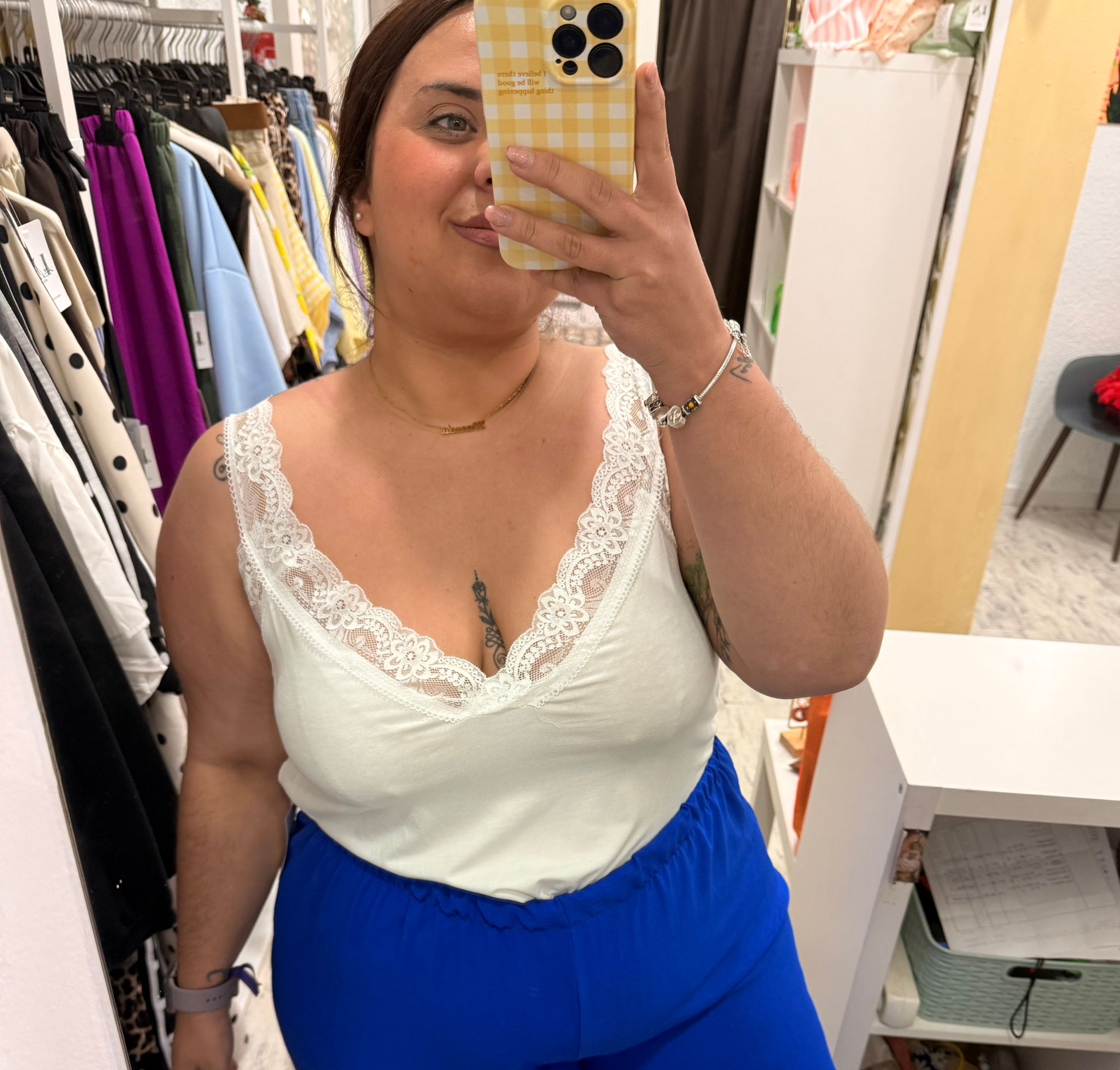 Lencera fluida con encaje en los tirantes y en el escote.
