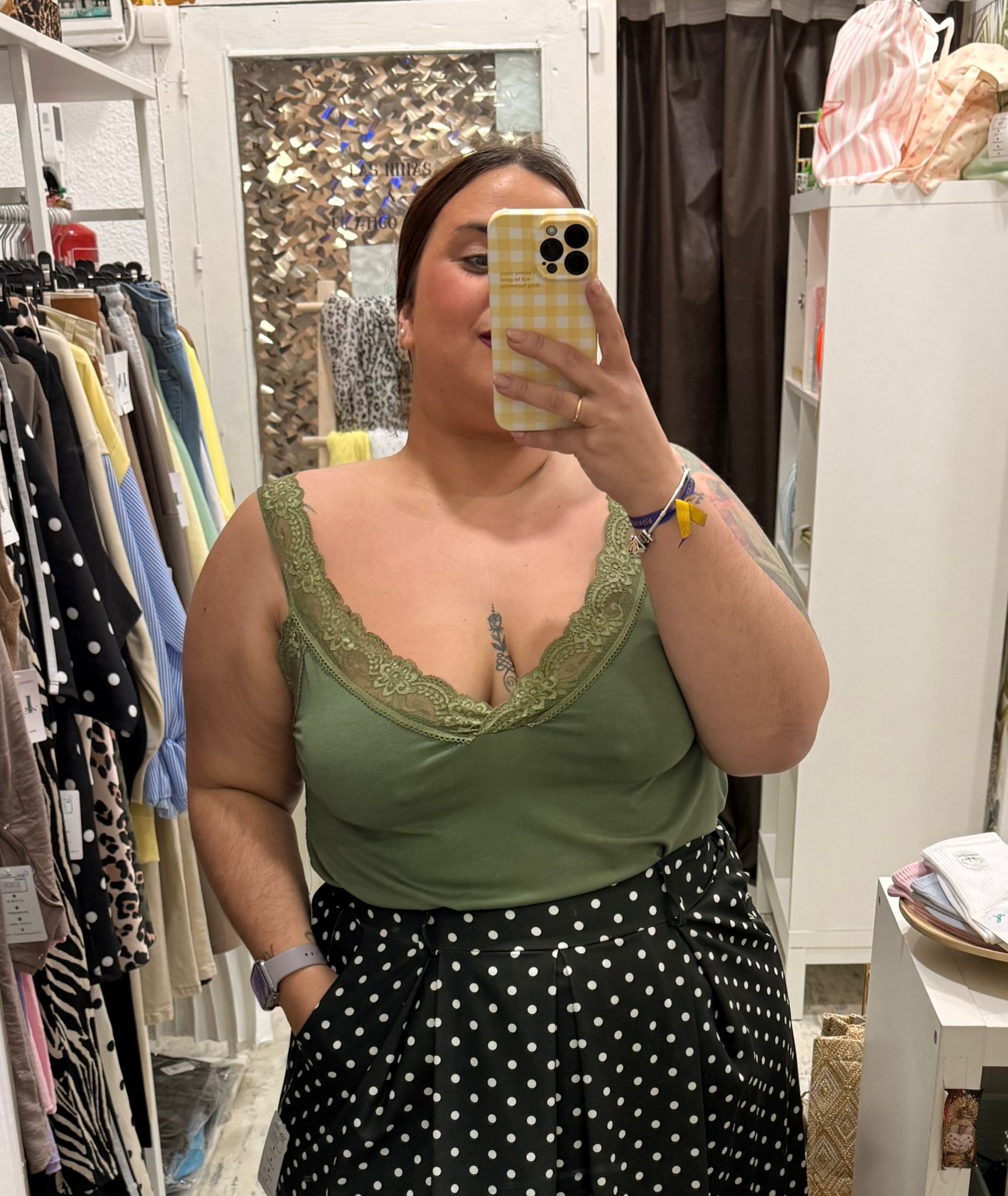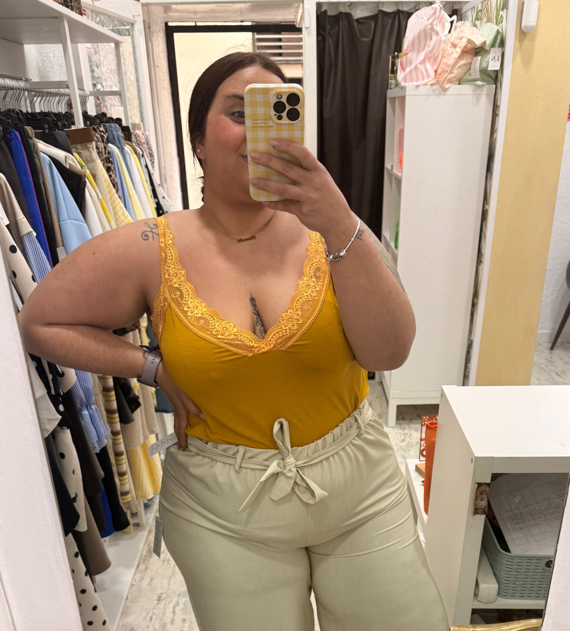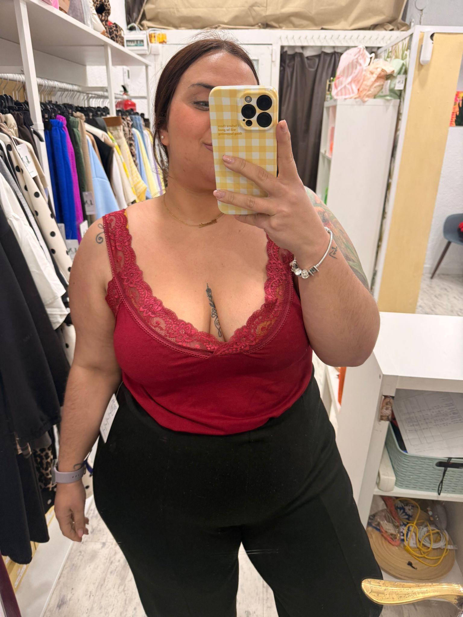 Lencera fluida con encaje en los tirantes y en el escote.