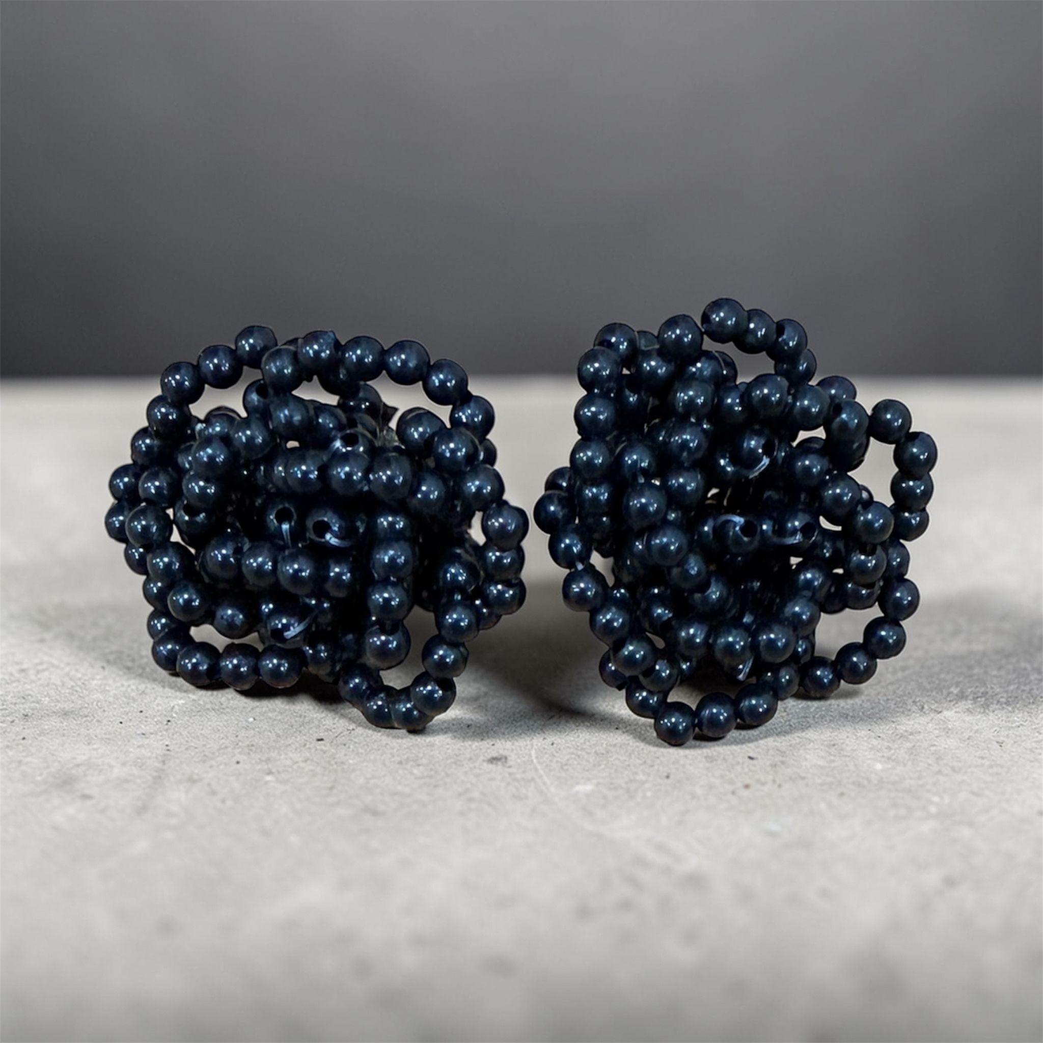 Pendientes en forma de flor pegados de bolitas en color negro.